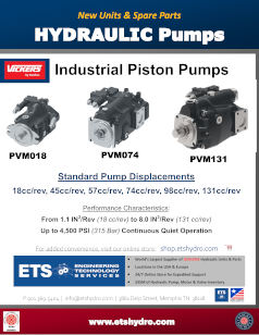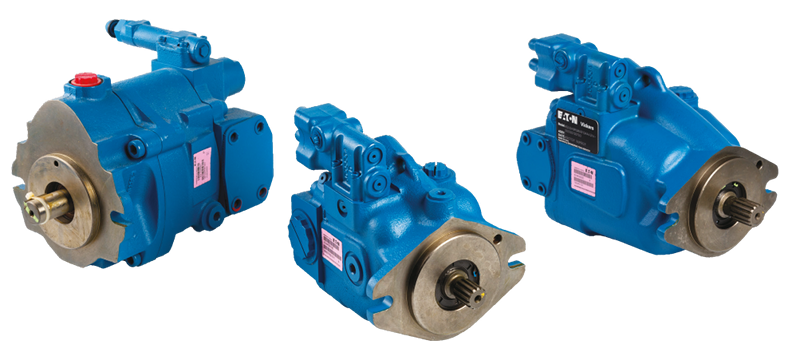 Vickers PVM Variable displacement piston pumps rated for 315 BAR (or 4568 PSI). These industrial units are offered in PVM018/20, 45/50, 57/63, 74/81, 98/106, and 131/141 sizes with standard style compensators.