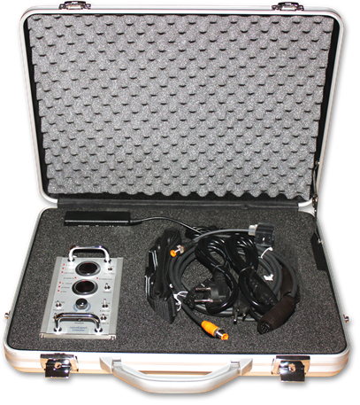 - The service case comprises a test device as well as an optional power supply unit (+24V, 3.75A) and connecting cables